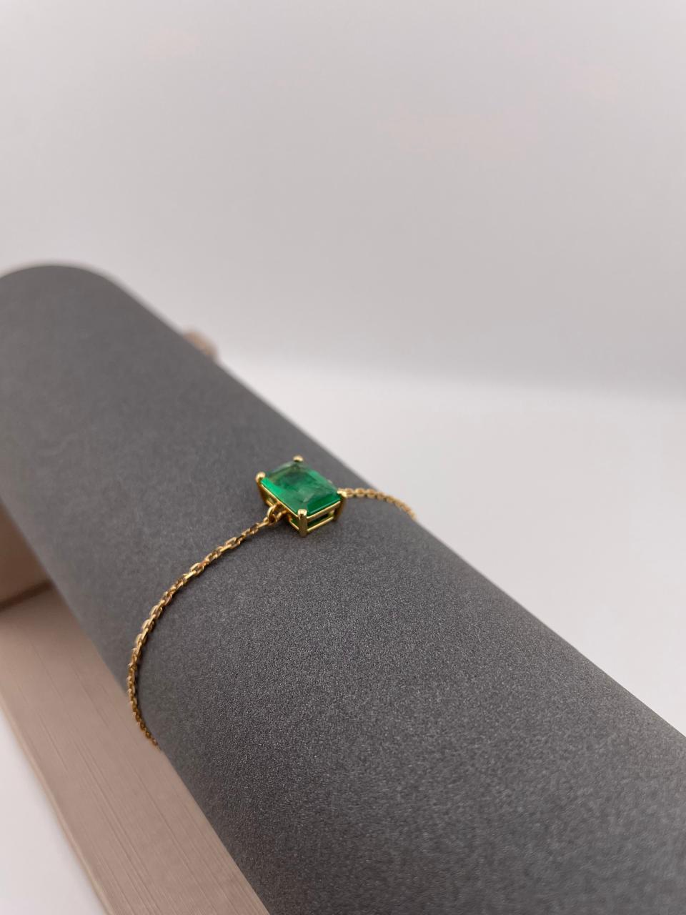 Элегантный золотой браслет 750 пробы, украшенный великолепным изумрудом весом 2,66 карата. Изысканное украшение длиной 19 см и весом 2,94 грамма подчеркнет статус и утонченный вкус своей обладательницы. Классическое сочетание благородного металла и драгоценного камня создает роскошный образ для особого случая.