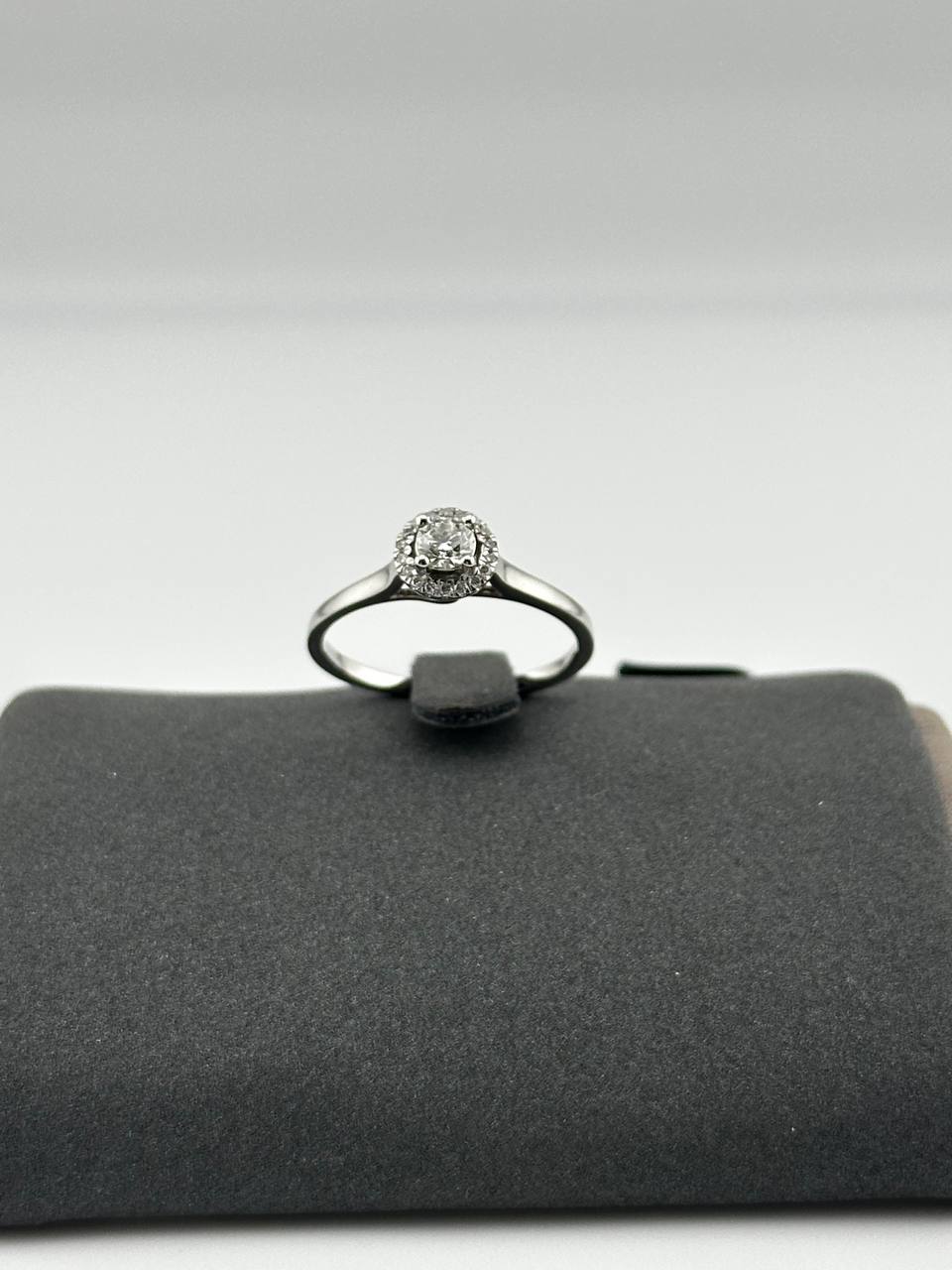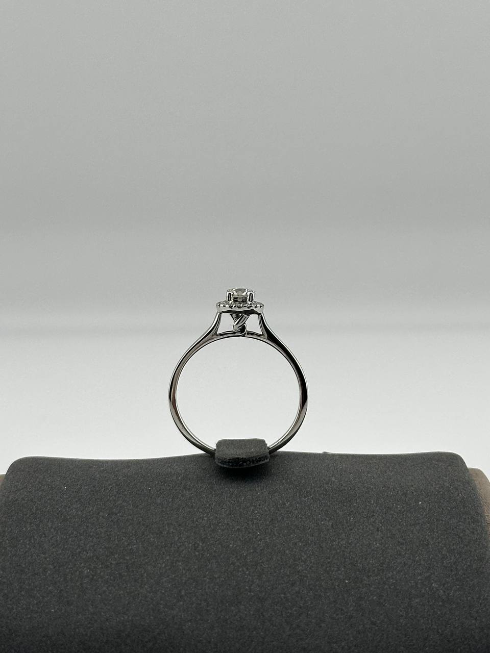 Элегантное кольцо из золота 750 пробы, инкрустированное бриллиантом весом 0,22 карата (H/SI2). Утонченное украшение 17 размера весом 2,41 грамма, сочетающее в себе классический дизайн и благородный блеск драгоценных камней.
