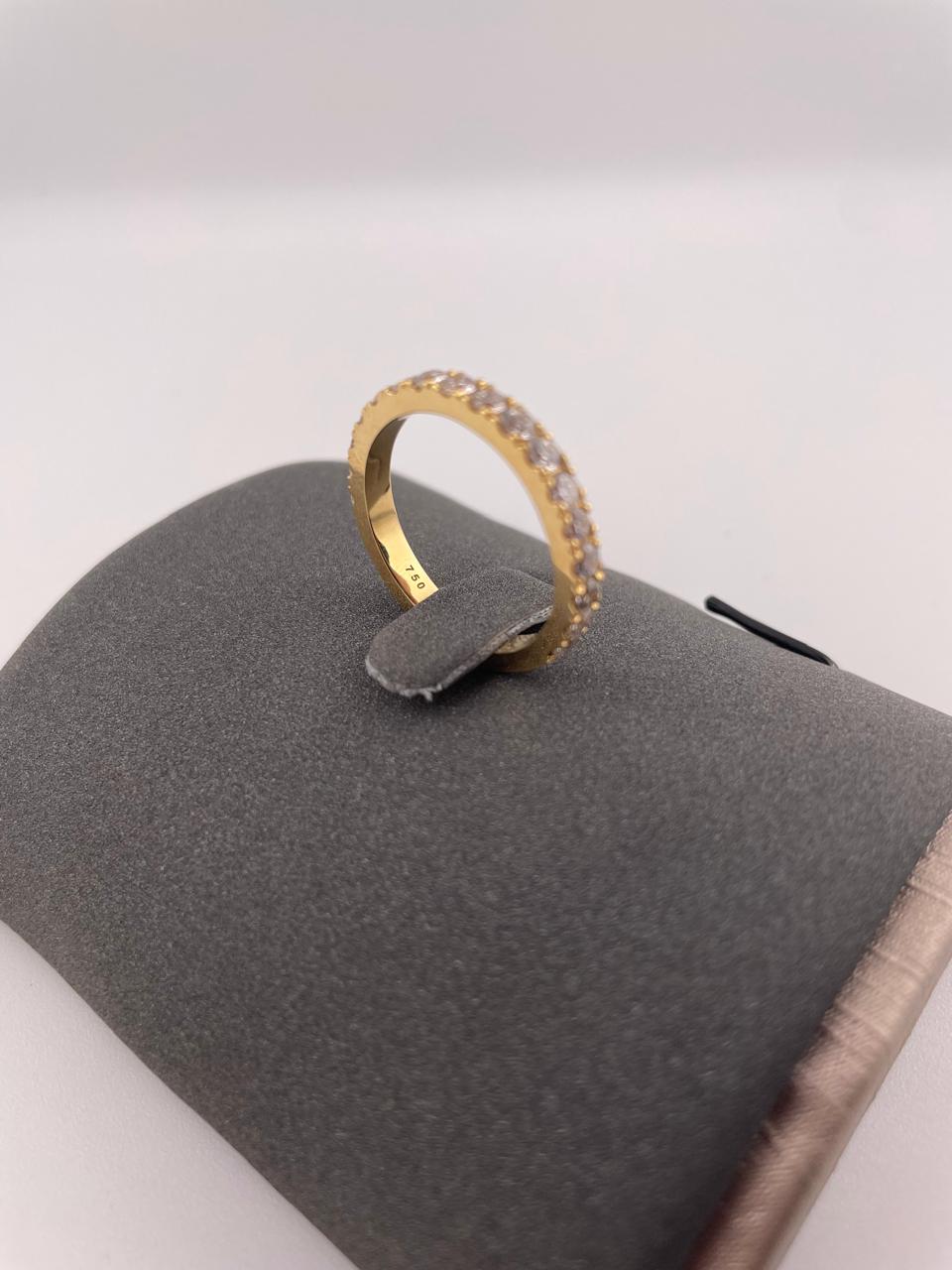 Изысканное кольцо из золота 750 пробы весом 4,44 грамма. Модель украшена великолепными бриллиантами общим весом 1,08 карат с характеристиками чистоты VS и цвета E. Классическое украшение 18 размера, сочетающее в себе роскошь материалов и безупречное сияние драгоценных камней.