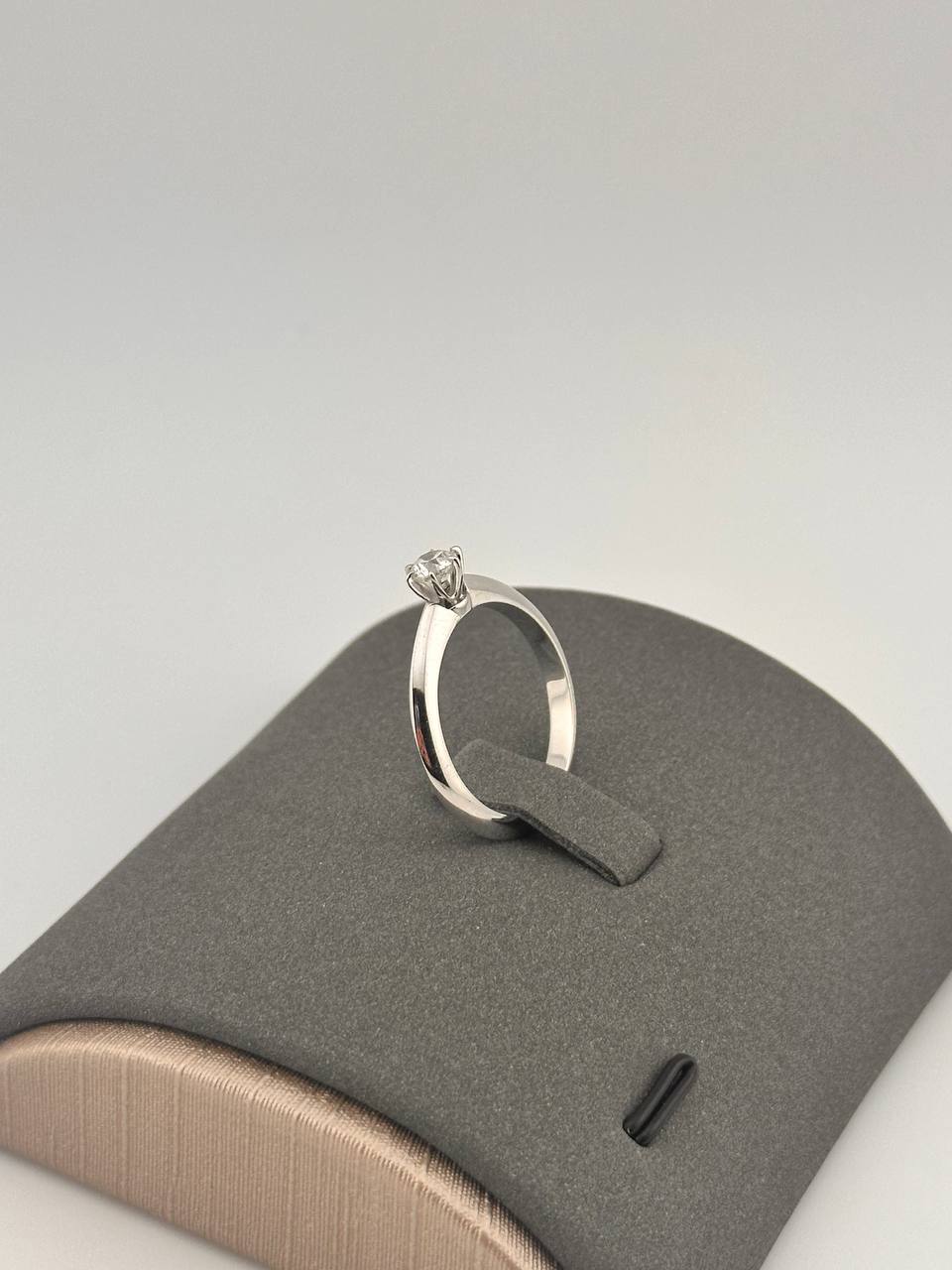 Изящное золотое кольцо 750 пробы весом 3,24 грамма. Центральным элементом украшения является сверкающий бриллиант весом 0,26 карата. Классический дизайн в размере 17,5 идеально подчеркнет благородный вкус и добавит роскоши любому образу.