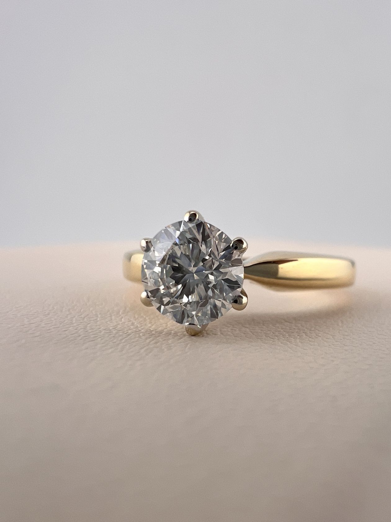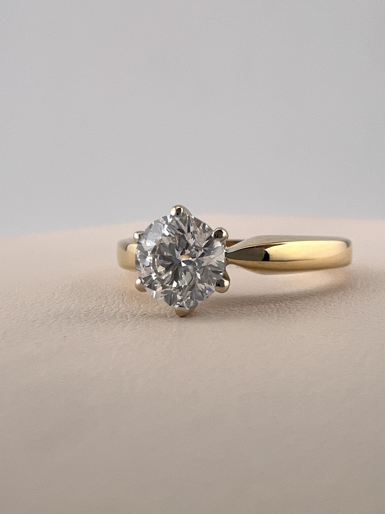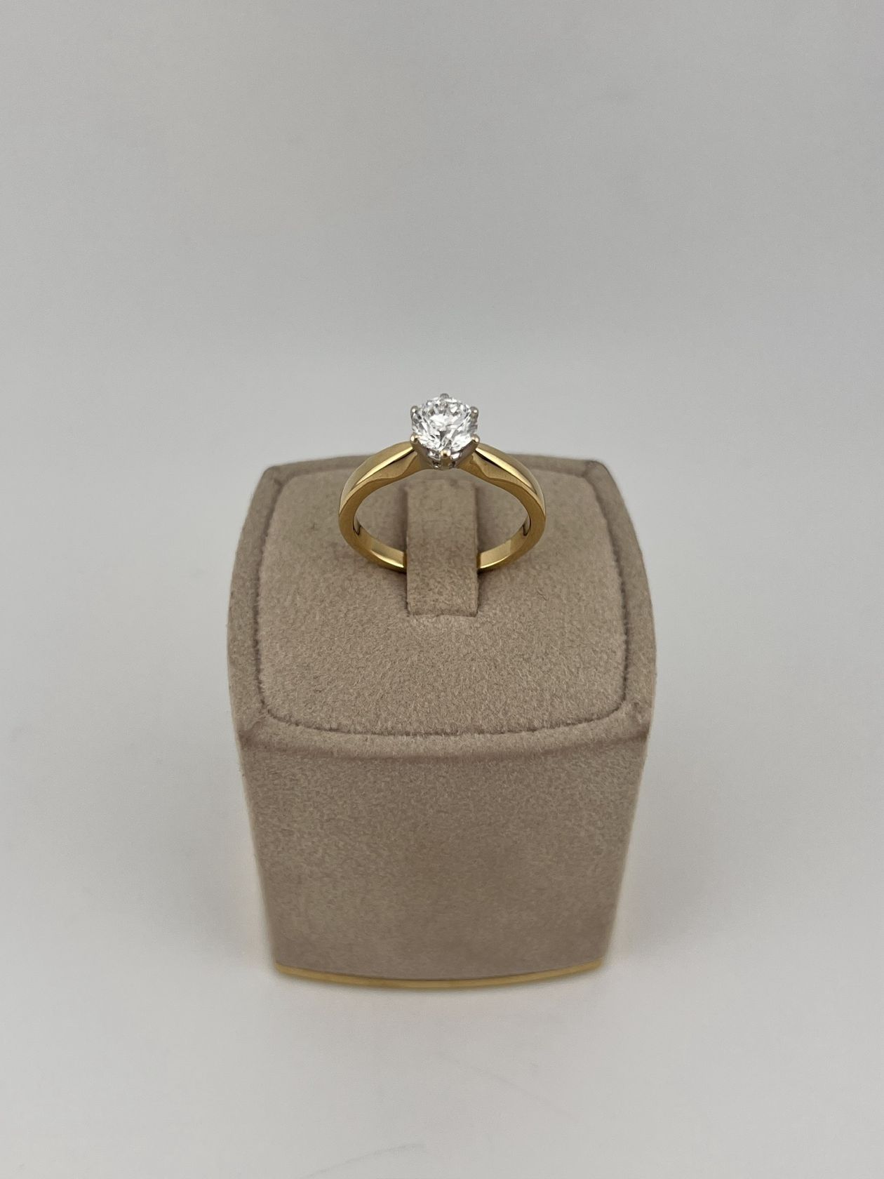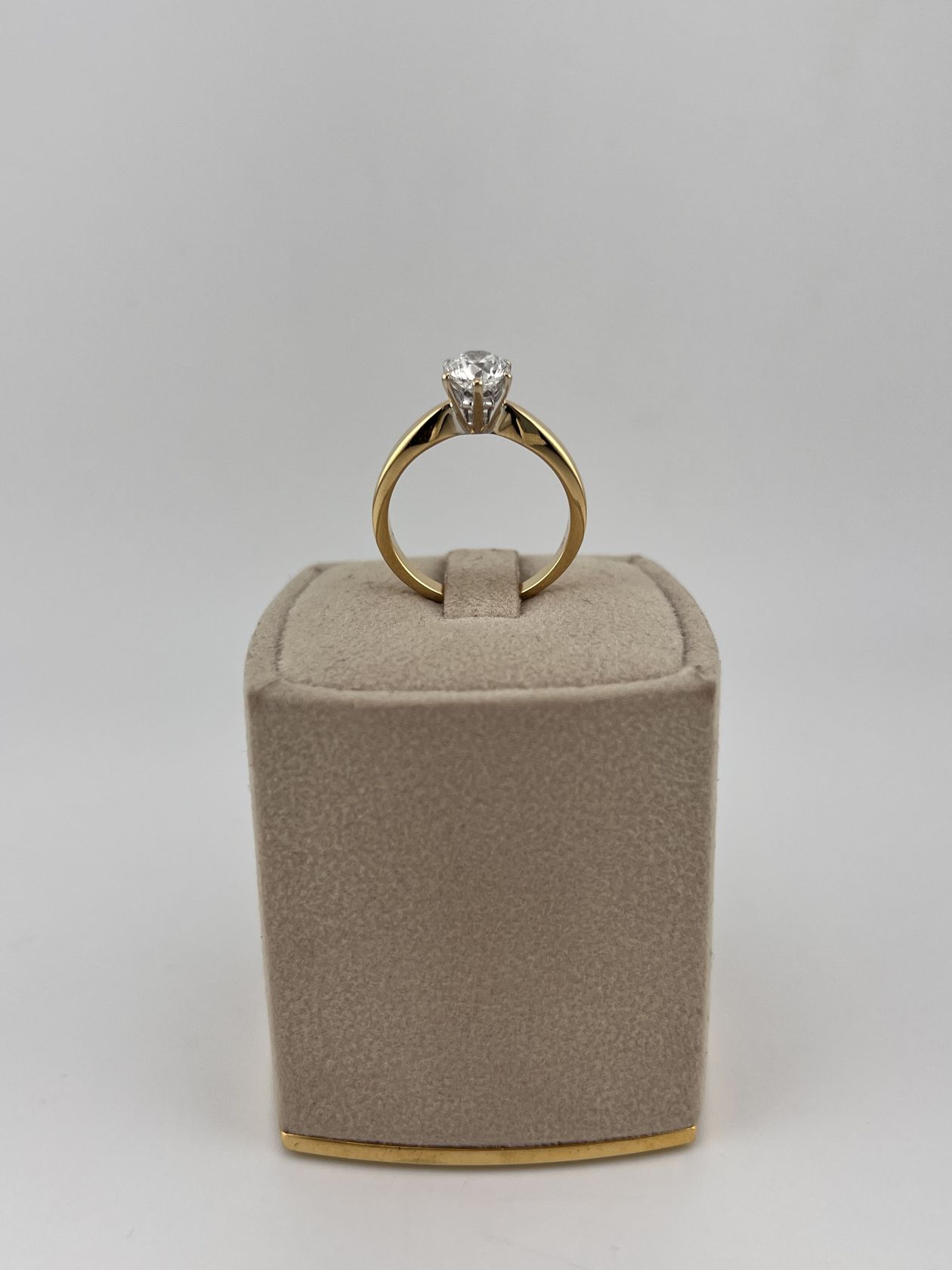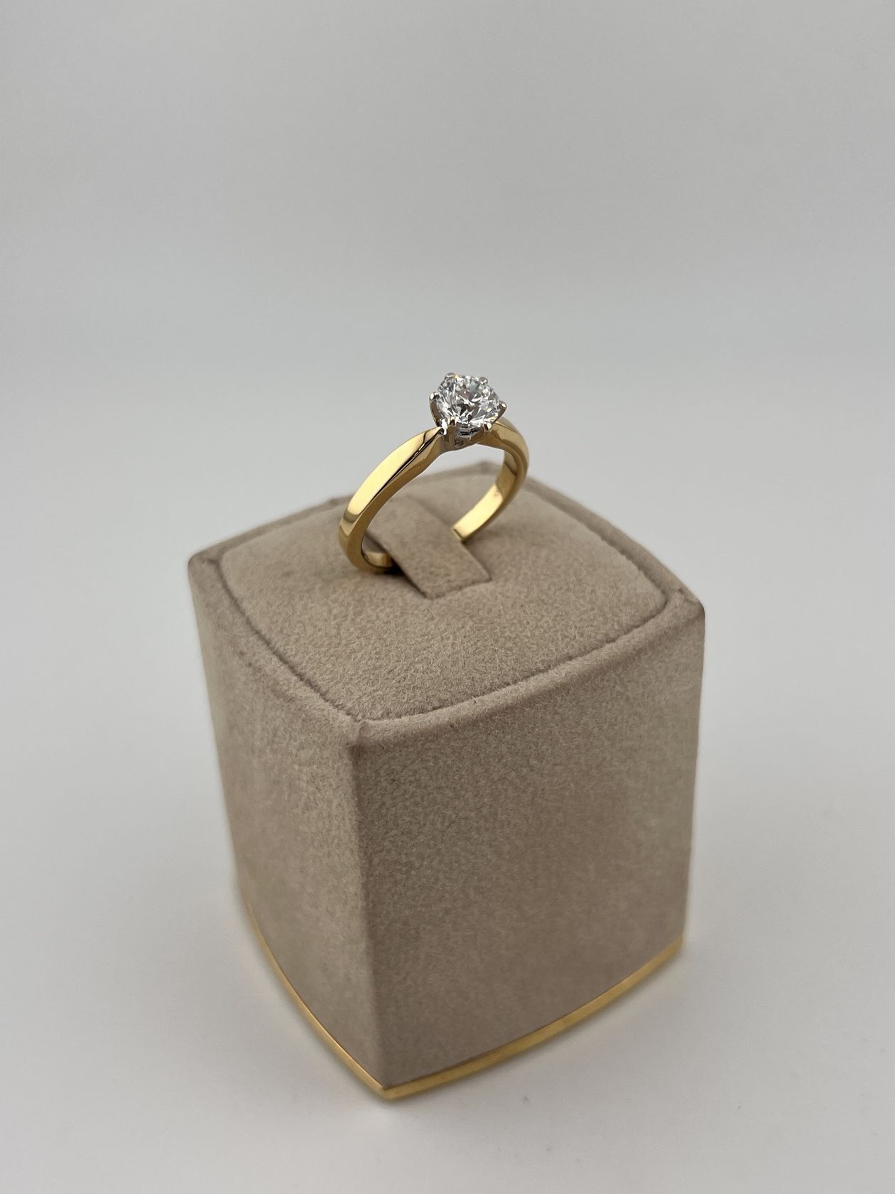 Изысканное золотое кольцо 750 пробы весом 4,79 грамма. Лаконичный дизайн изделия подчеркивает природную красоту центрального бриллианта весом 1 карат. Роскошное украшение, которое станет идеальным символом особых моментов и подчеркнет безупречный вкус своей обладательницы.