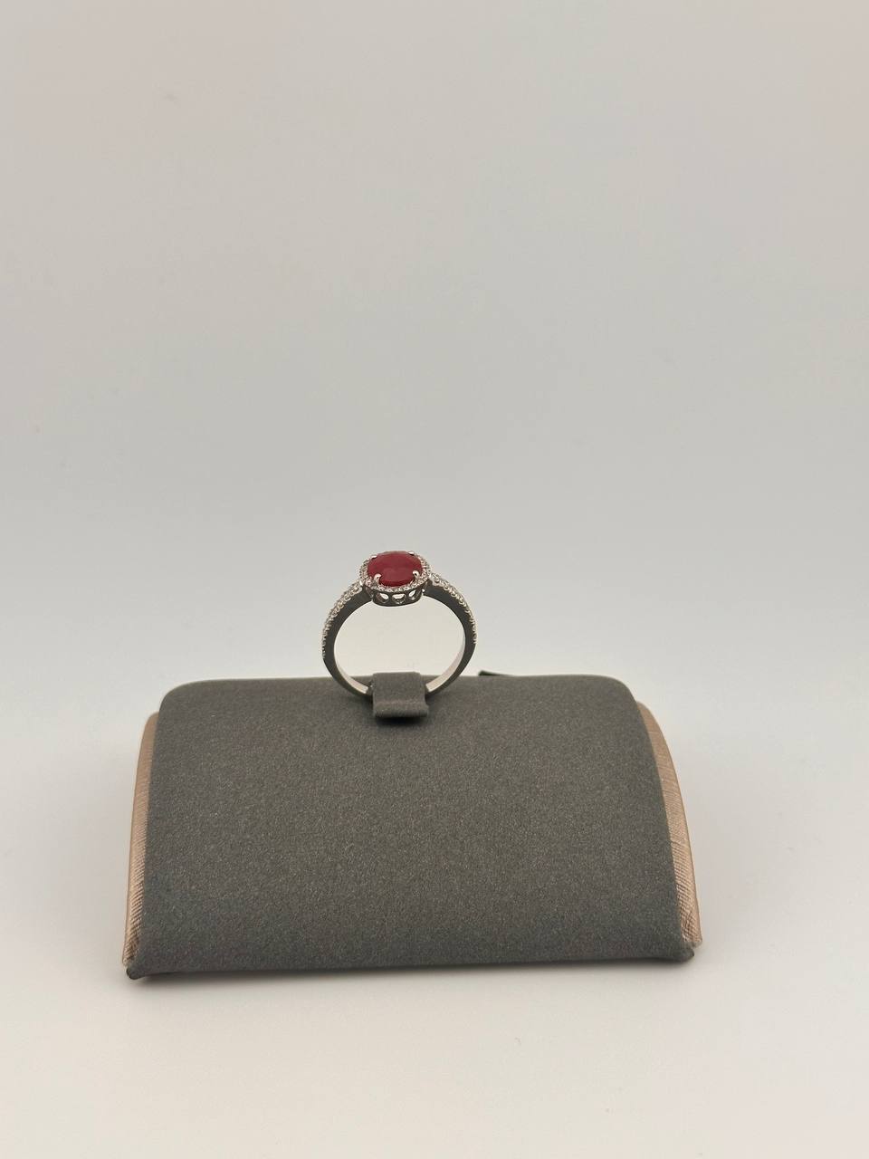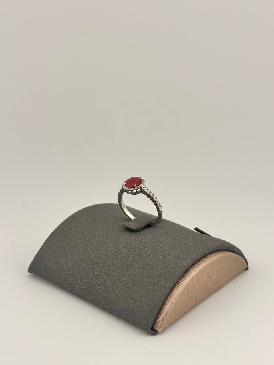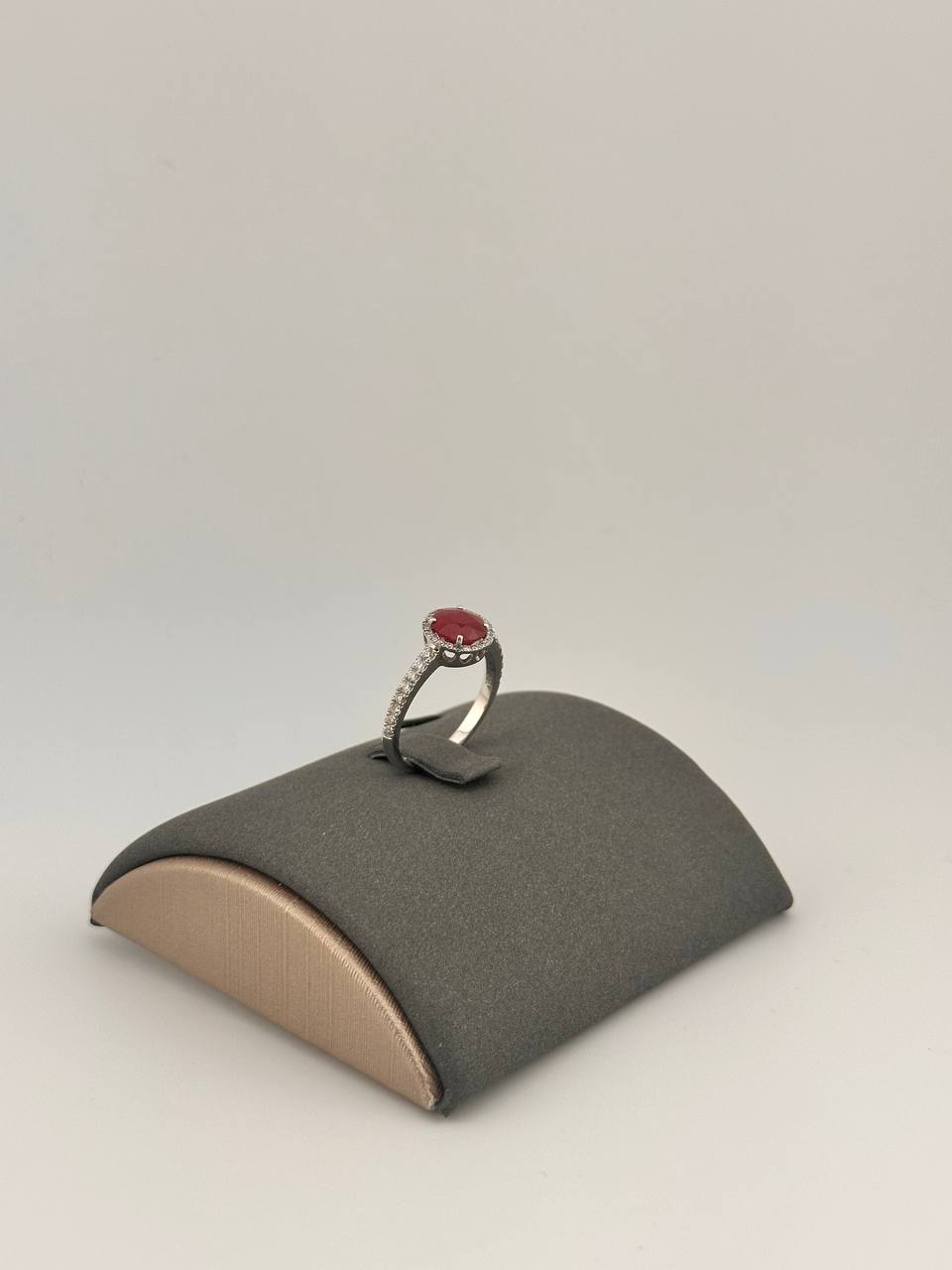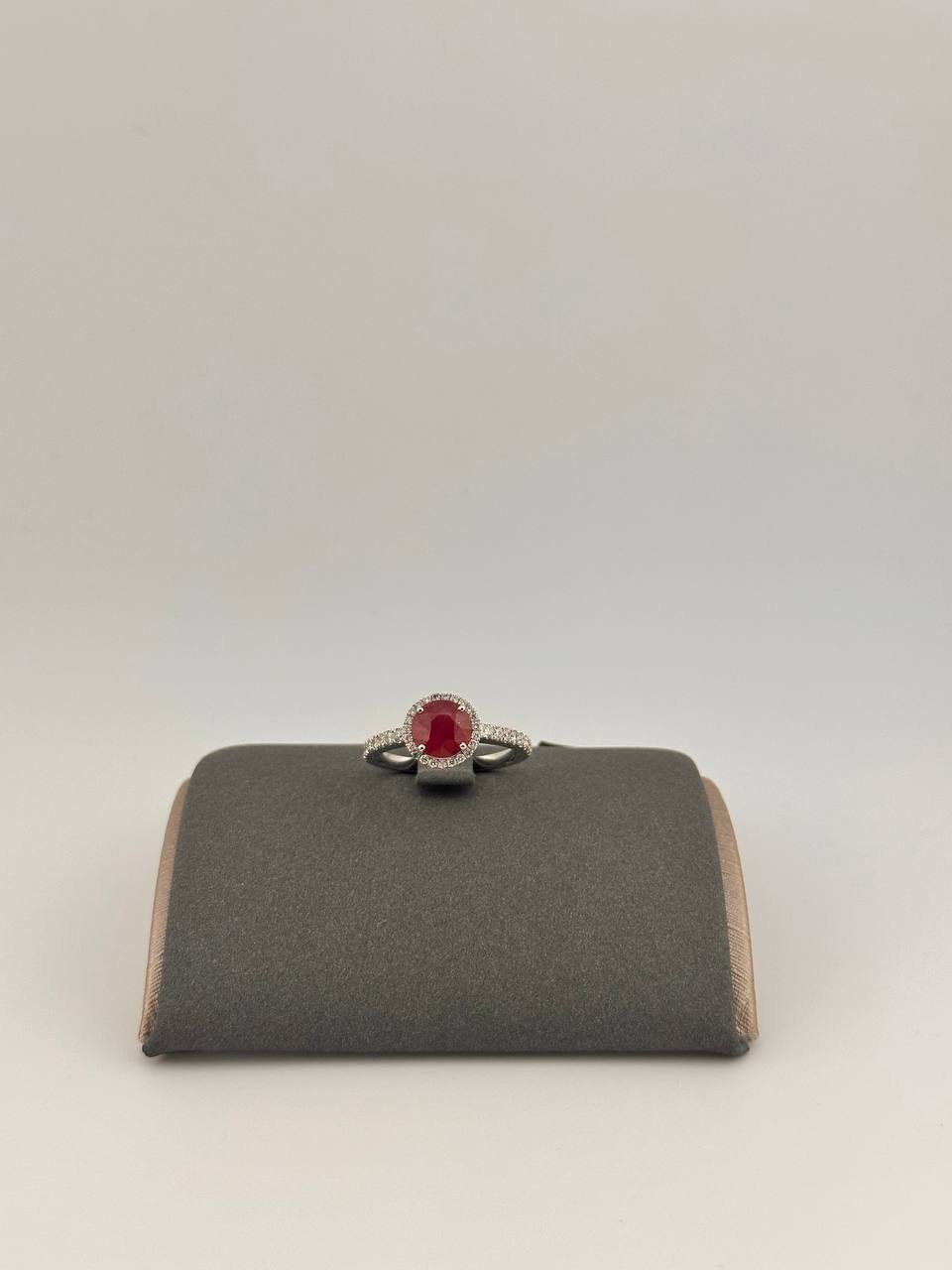 Элегантное кольцо из золота 750 пробы, украшенное рубином весом 1,64 карата и россыпью бриллиантов общим весом 0,38 карата. Изысканное сочетание драгоценных камней и классического дизайна создает роскошный образ, подчеркивающий безупречный вкус и статус владелицы.