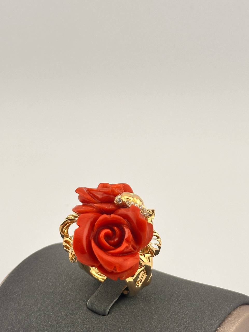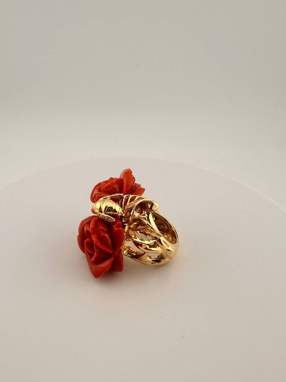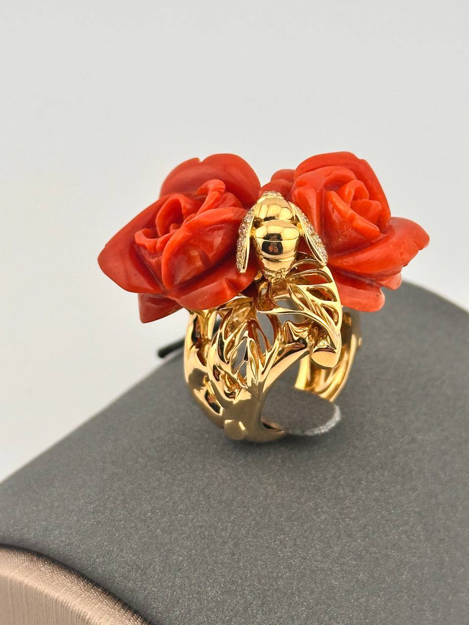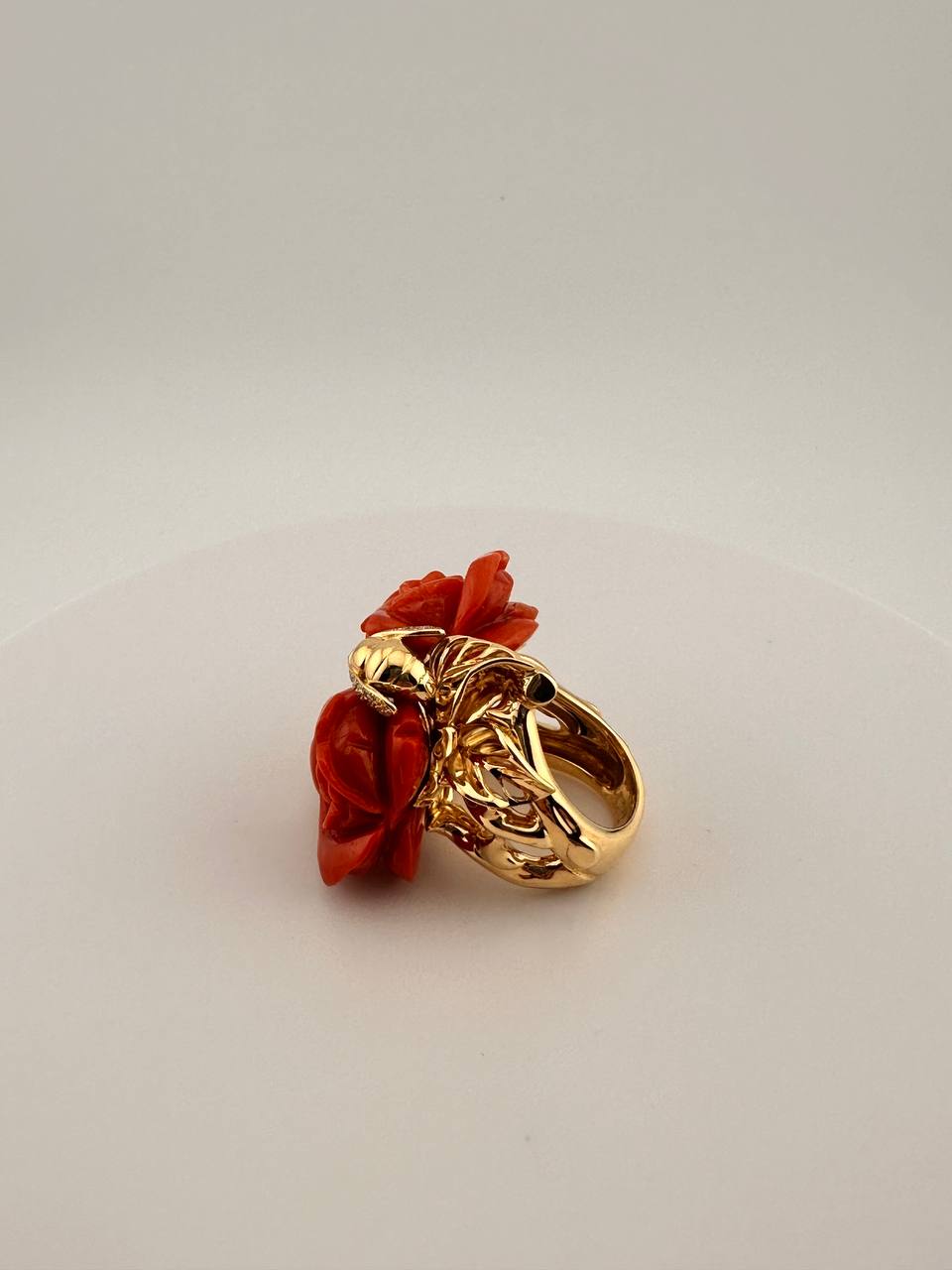 Роскошное кольцо Dior из золота 750 пробы, выполненное в уникальном дизайне. Массивное украшение весом 31,05 грамма декорировано изысканной вставкой из натурального коралла, подчеркивающей элегантность и статус владельца. Эффектный аксессуар от легендарного модного дома для создания неповторимого образа.