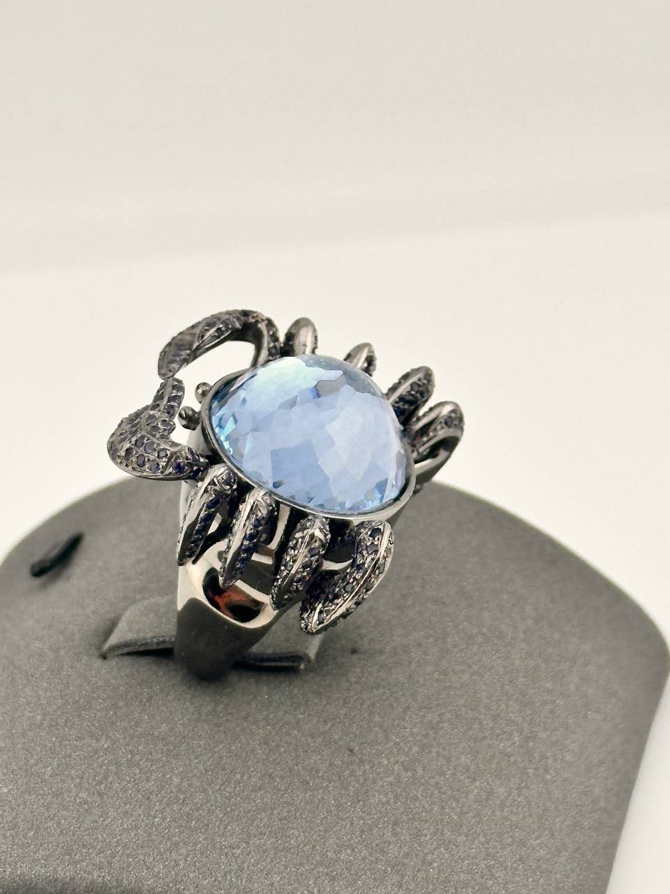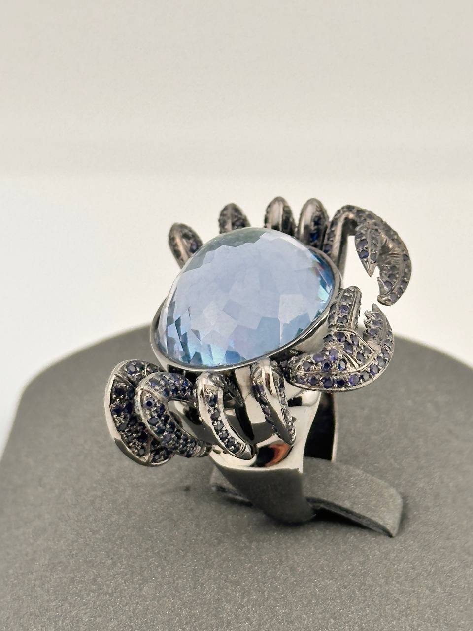 Роскошное кольцо Stephen Webster из золота 750 пробы. Массивное украшение весом 29,7 грамма выполнено в уникальном дизайне и дополнено вставками из опала и сапфиров. Изысканное изделие 18 размера, подчеркивающее высокий статус и индивидуальность владельца.