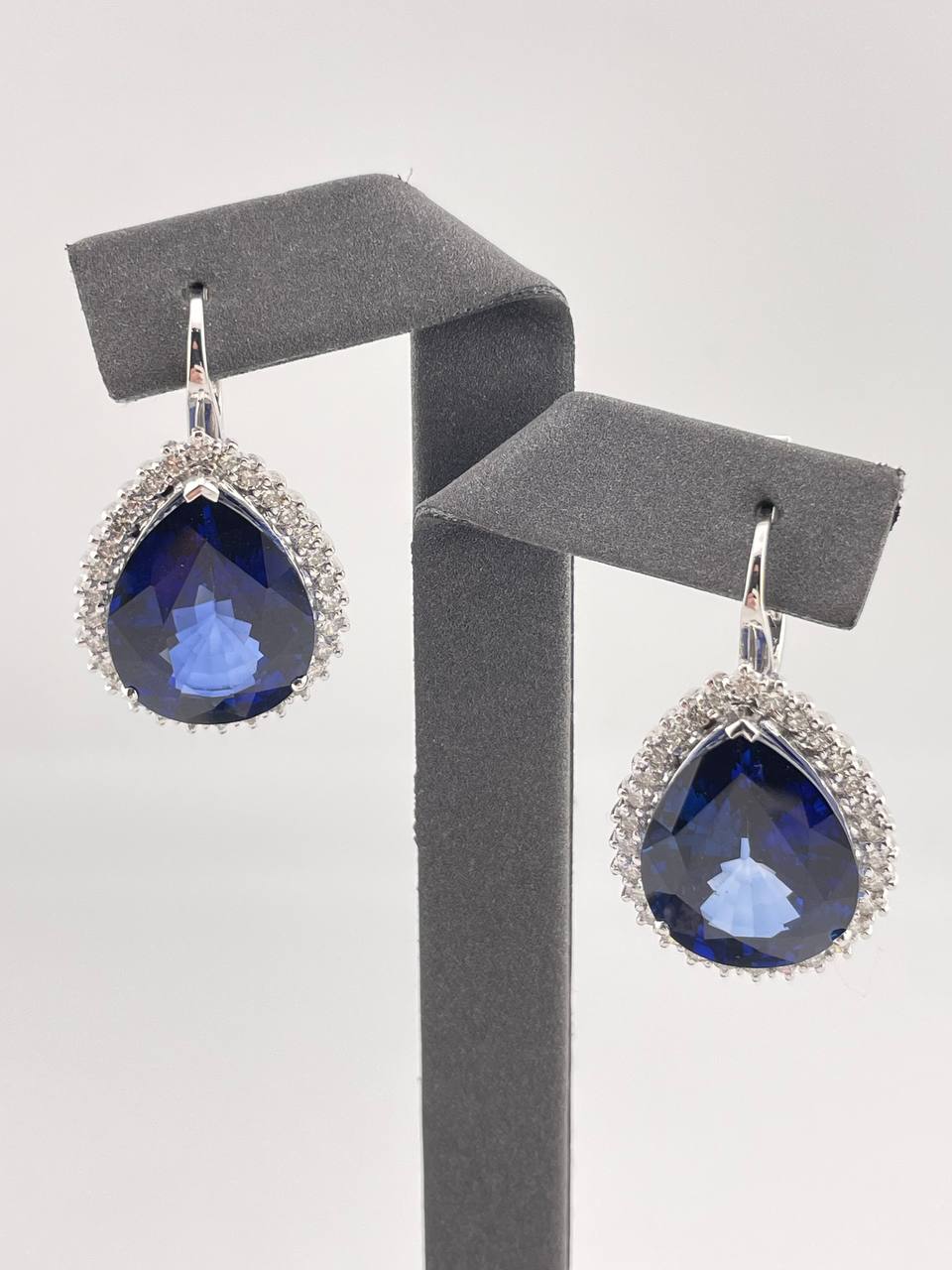 Роскошный комплект из золота 750 пробы, включающий кольцо и серьги. Изысканный дизайн подчеркнут насыщенным блеском корундов. Элегантное украшение общим весом 25,3 грамма и 18 размера станет идеальным дополнением к вечернему образу, сочетая в себе классический стиль и высокое качество исполнения.