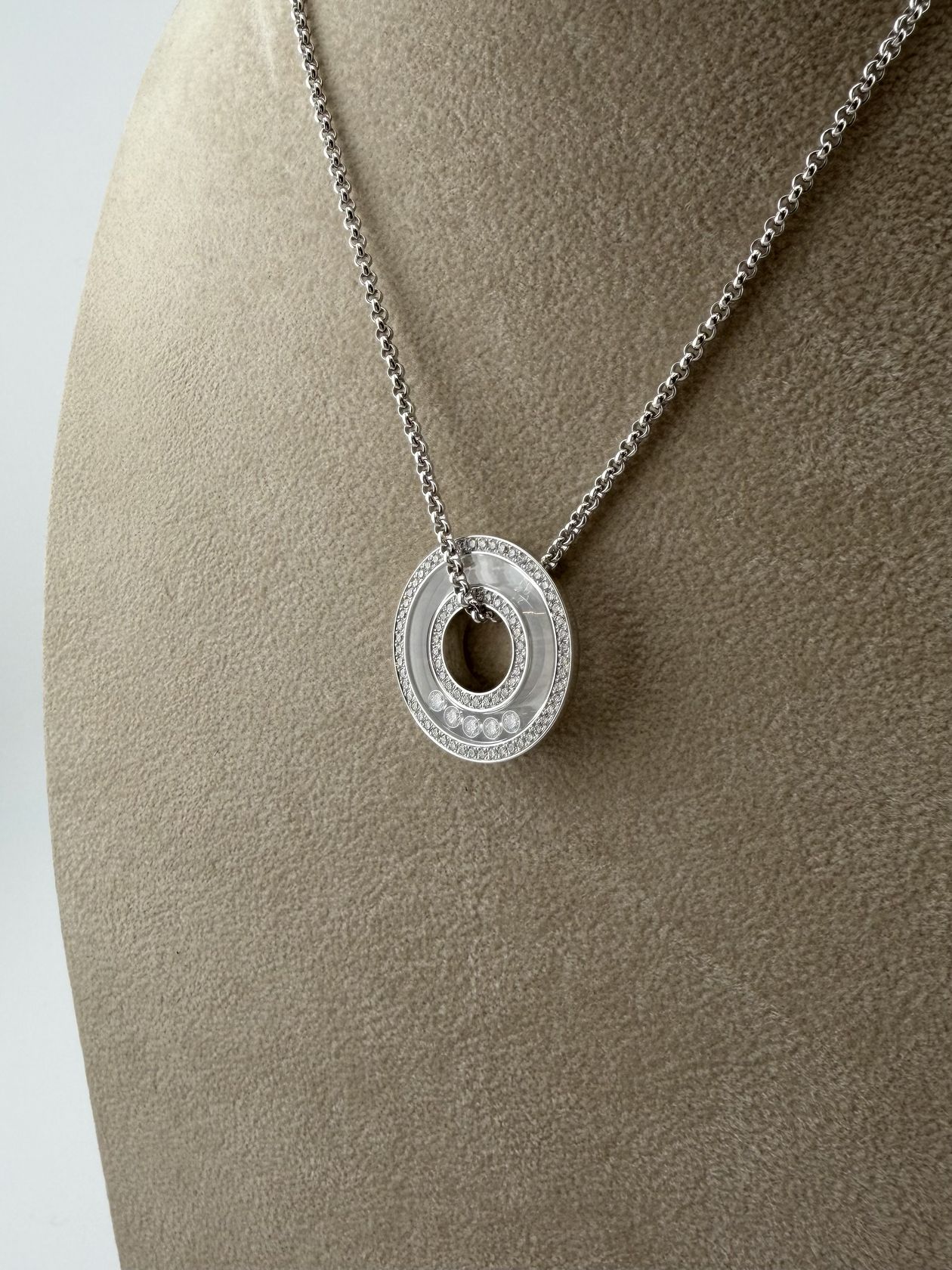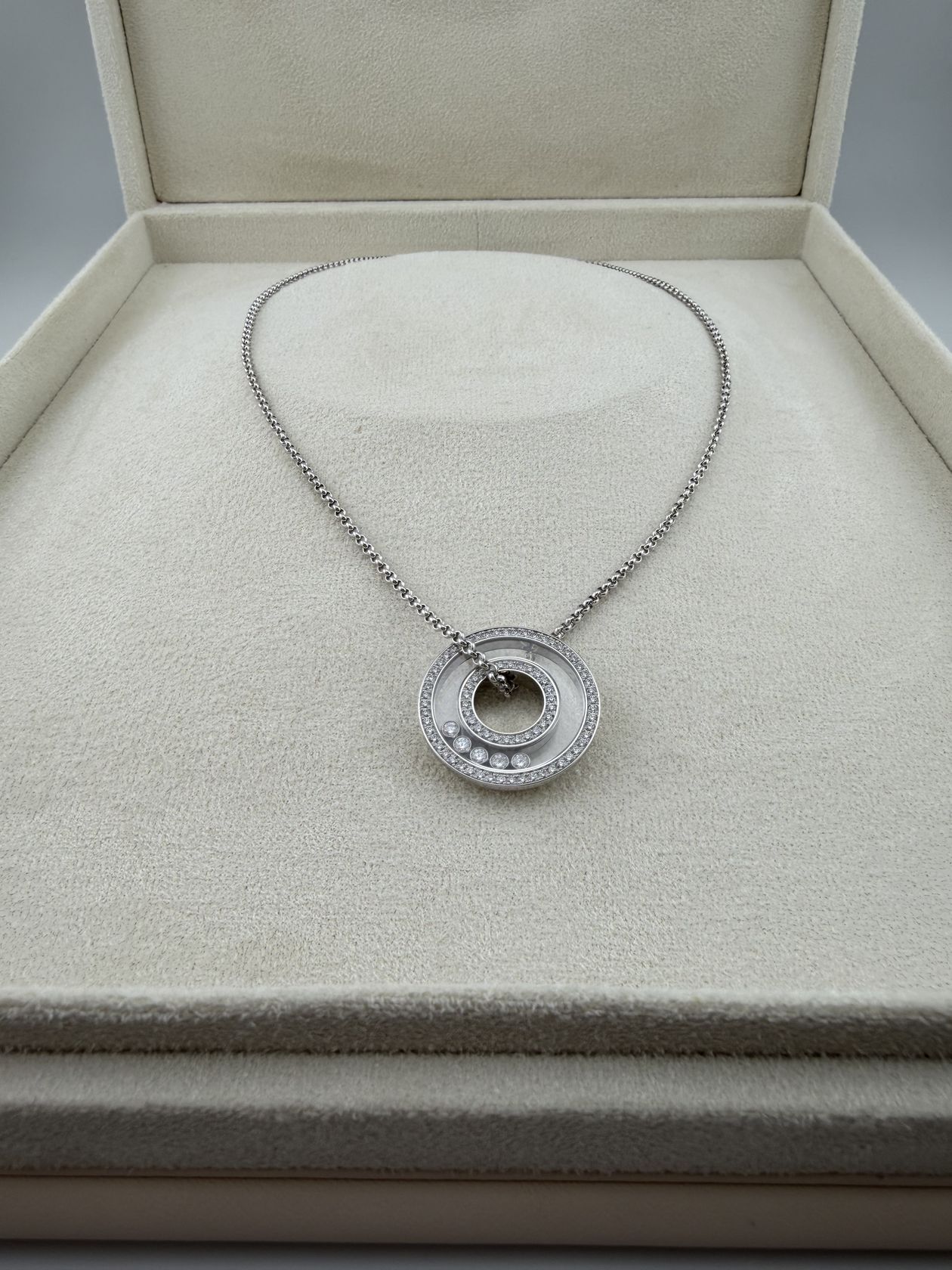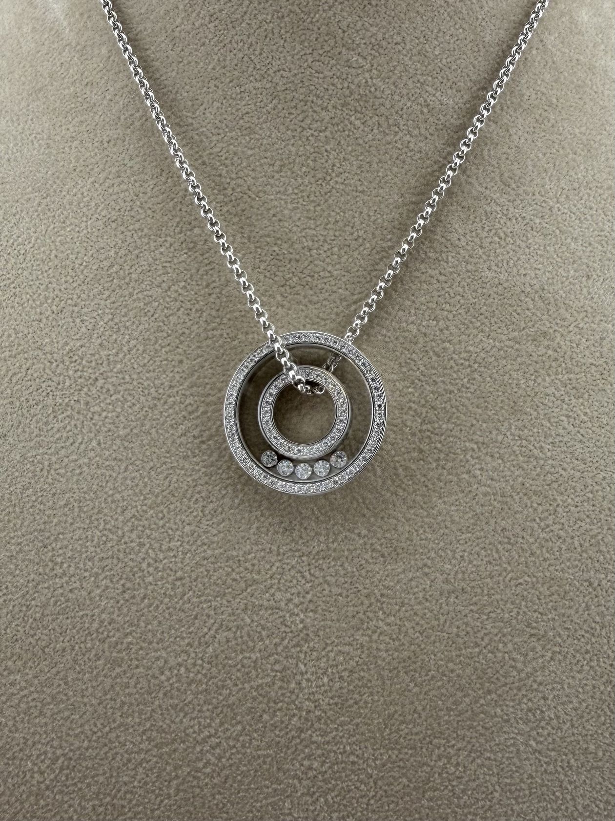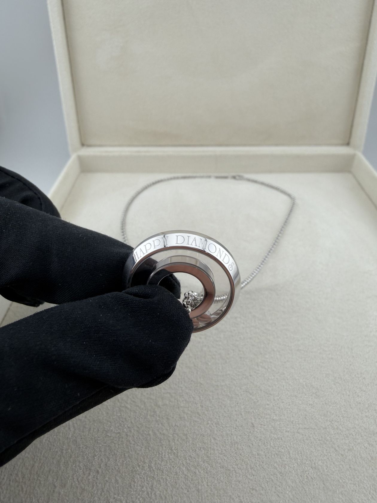 Изысканный кулон Chopard из коллекции Happy Diamonds, выполненный из желтого золота 750 пробы. Узнаваемый дизайн с легендарными подвижными бриллиантами под сапфировым стеклом создает неповторимую игру света. Роскошное украшение весом 11,41 грамма, воплощающее философию радости и элегантности швейцарского ювелирного дома.