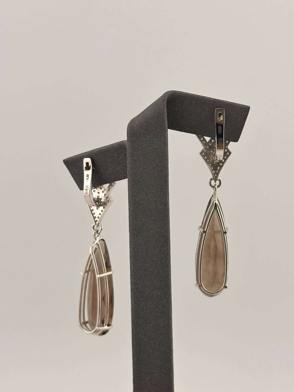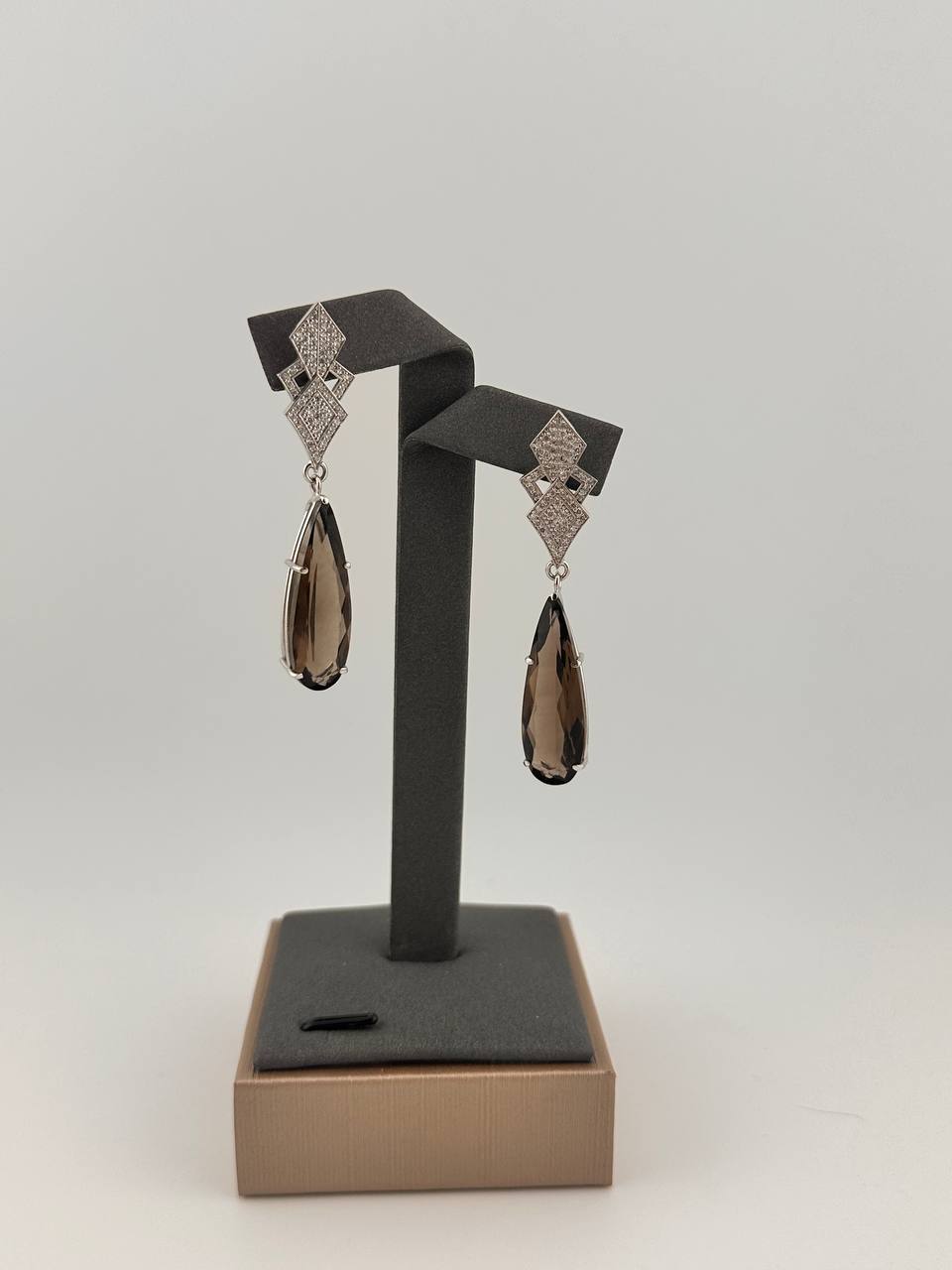 Сегьги золотые с бриллиантами и раухтопазом