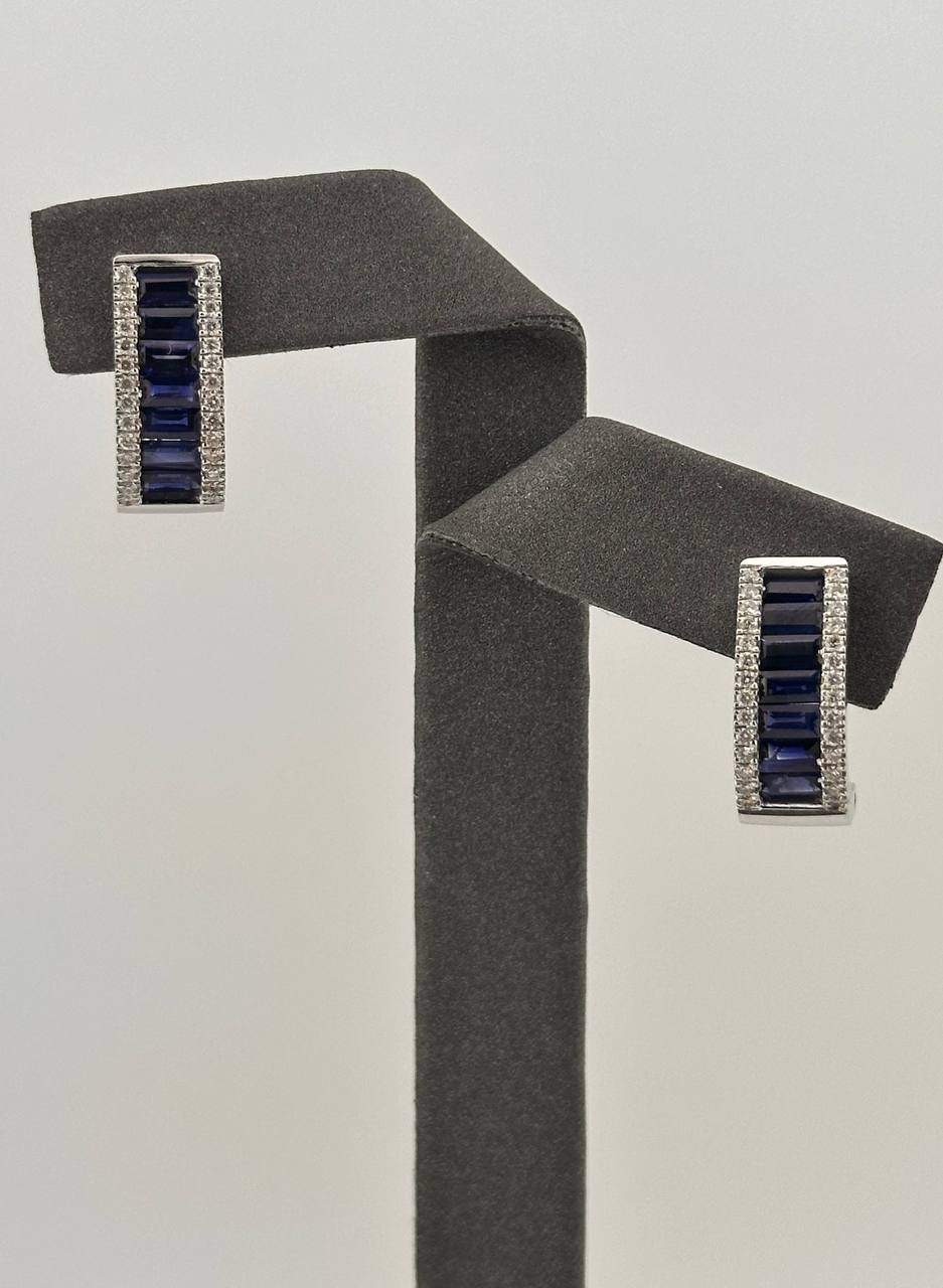 Изысканные золотые серьги-пусеты 750 пробы, инкрустированные сапфирами и бриллиантами. Классический дизайн и благородное сочетание драгоценных камней подчеркивают статус и безупречный вкус владелицы. Роскошное украшение весом 6,85 грамма станет идеальным дополнением к вечернему или деловому образу.