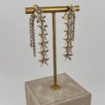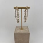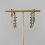 Роскошные серьги из золота 750 пробы, инкрустированные сияющими бриллиантами. Изысканный дизайн весом 14,39 грамма подчеркивает статус и безупречный вкус своей обладательницы, создавая неповторимый элегантный образ.