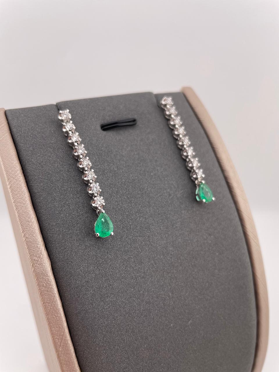 Роскошные золотые серьги 750 пробы, инкрустированные природными изумрудами общим весом 1,33 карата и сверкающими бриллиантами на 0,80 карата. Изысканное сочетание драгоценных камней весом 6,56 грамма подчеркнет ваш статус и безупречный вкус. Элегантное украшение, которое станет достойным дополнением вечернего образа или ценным подарком.