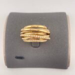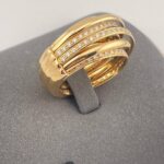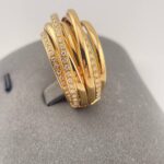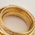 Массивное кольцо De Grisogono из легендарной коллекции Allegra, выполненное из золота 750 пробы. Украшение весом 25,12 грамма инкрустировано сияющими бриллиантами, что подчёркивает смелый и узнаваемый стиль женевского ювелирного дома. Размер 17,5–18. Редкое коллекционное изделие для истинных ценителей авангардного ювелирного искусства.