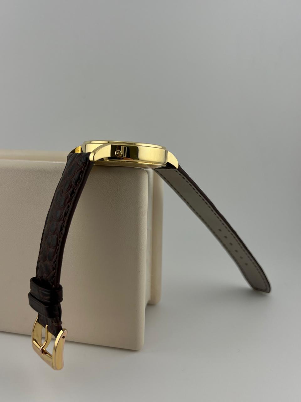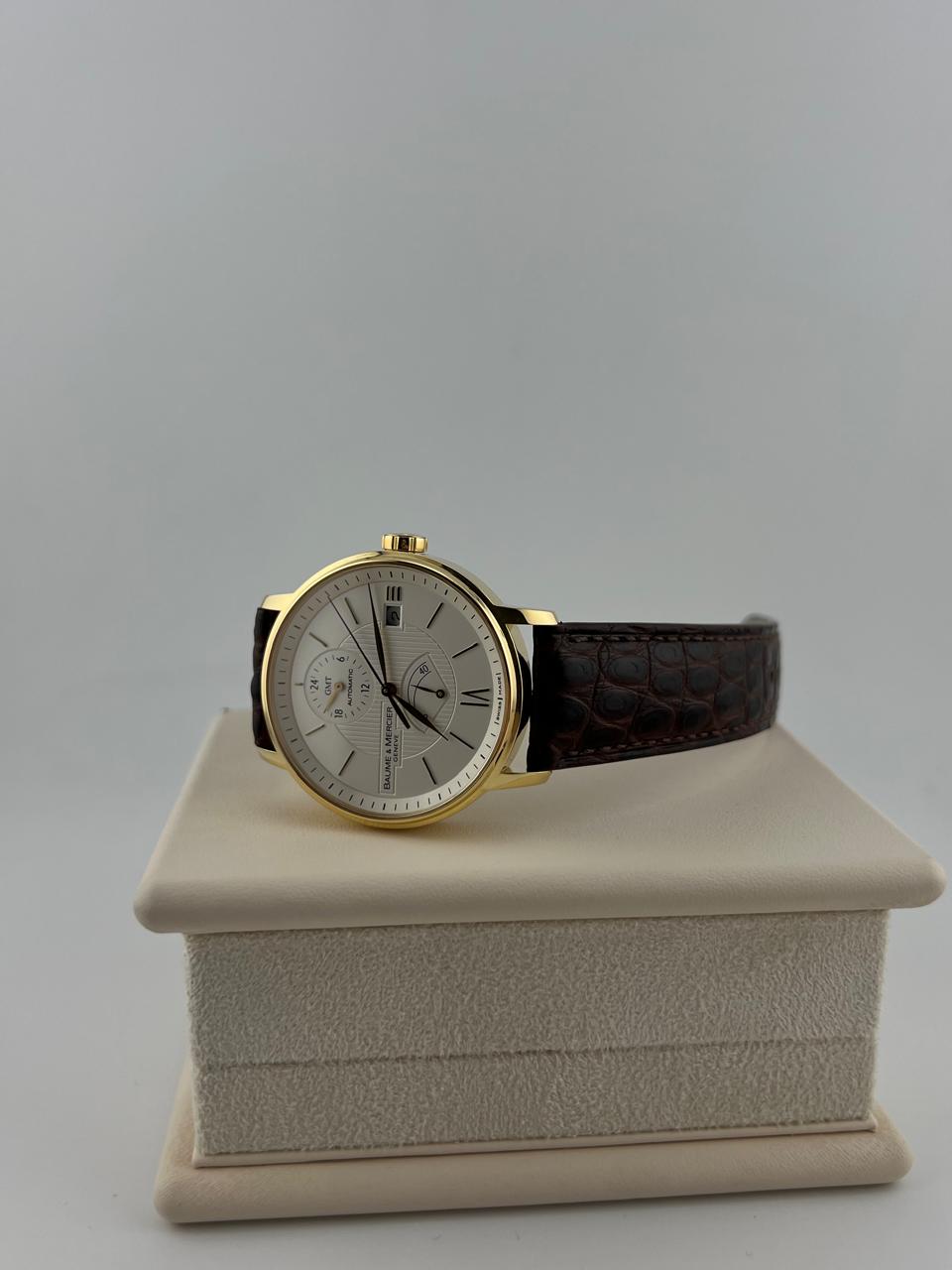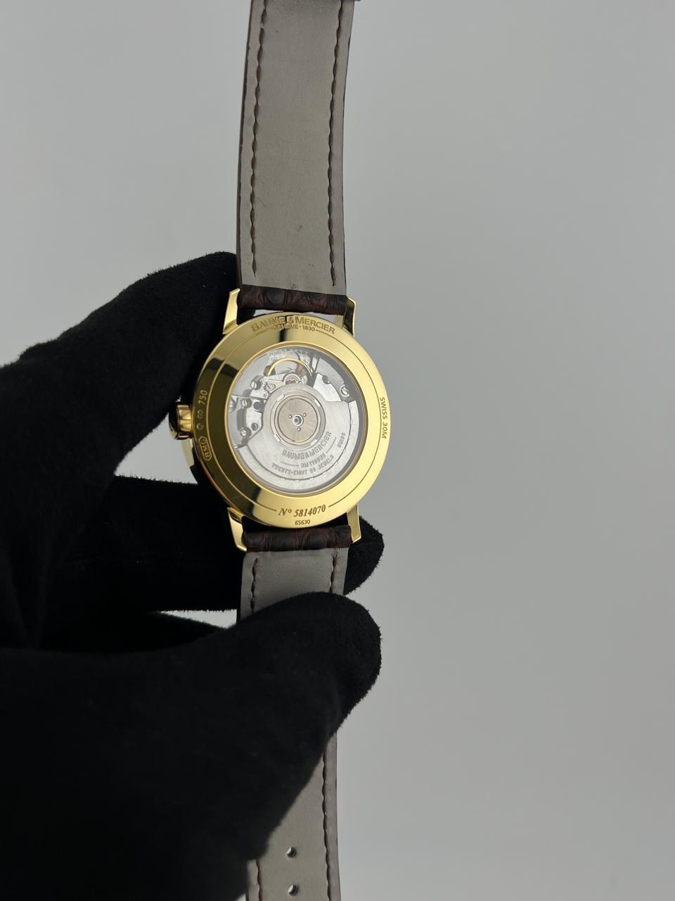 Элегантные швейцарские часы Baume & Mercier в корпусе из золота 750 пробы диаметром 39 мм. Модель оснащена надежным механизмом с автоподзаводом и дополнена классическим кожаным ремешком. Изысканный дизайн и традиционное качество исполнения от знаменитого часового бренда.