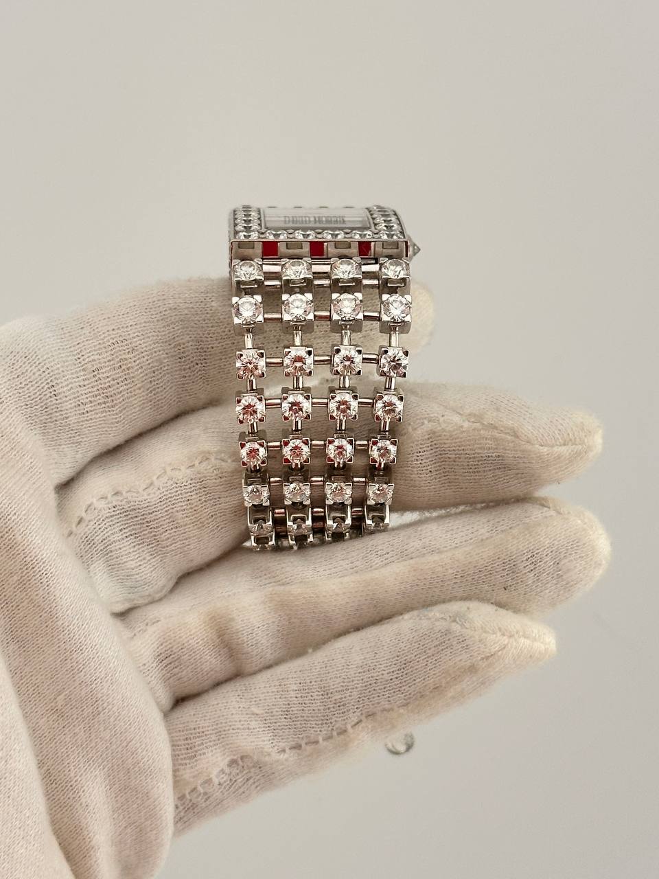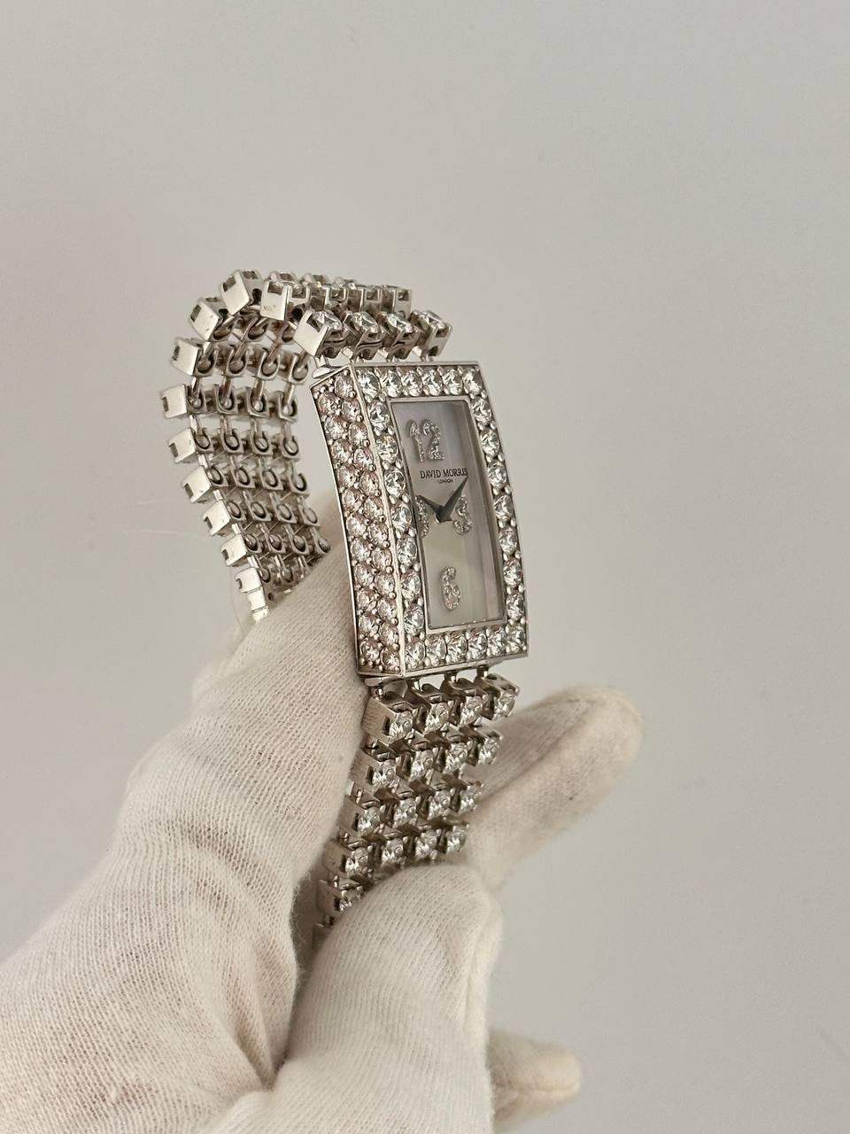 Изысканные женские часы David Morris в корпусе из золота, инкрустированном бриллиантами. Модель размером 24 х 31 мм оснащена точным кварцевым механизмом и дополнена роскошным золотым браслетом с бриллиантовым мощением. Истинное ювелирное украшение, сочетающее в себе элегантность и безупречный стиль.
