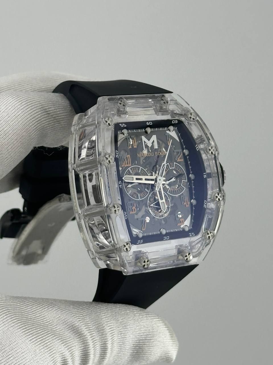 Стильные мужские часы Maikou Bode в эффектном корпусе из синтетического кристалла размером 42,5 x 50 мм. Модель оснащена надежным механизмом с автоподзаводом и дополнена практичным каучуковым ремешком. Современный футуристичный дизайн и высокое качество исполнения делают этот аксессуар ярким акцентом в повседневном образе.