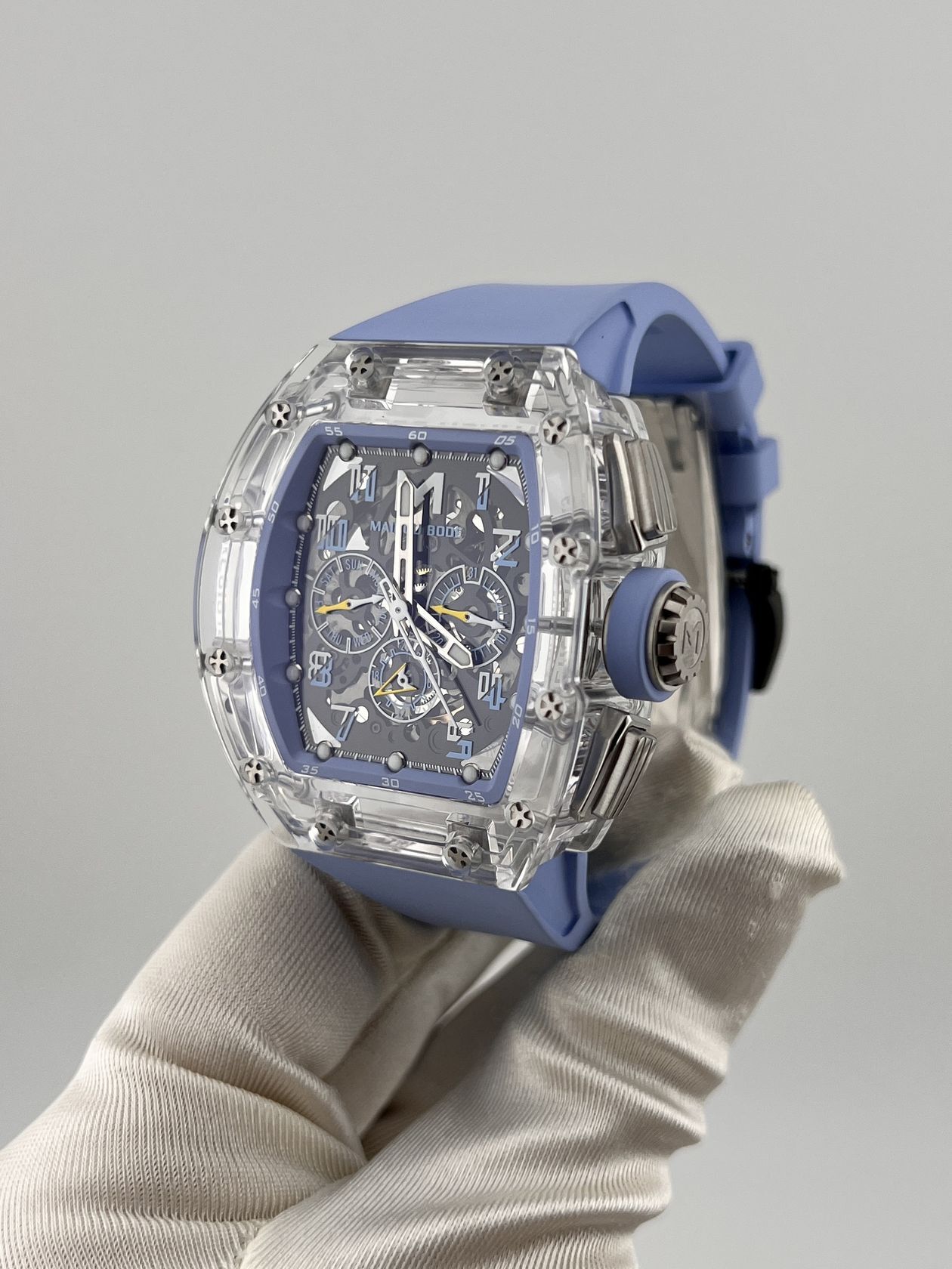 Стильные часы Maikou Bode в корпусе из синтетического кристалла размером 42,5 x 50 мм. Модель оснащена надежным механизмом с автоподзаводом и дополнена практичным каучуковым ремешком. Оригинальный современный дизайн и высокое качество исполнения для ценителей уникальных аксессуаров.