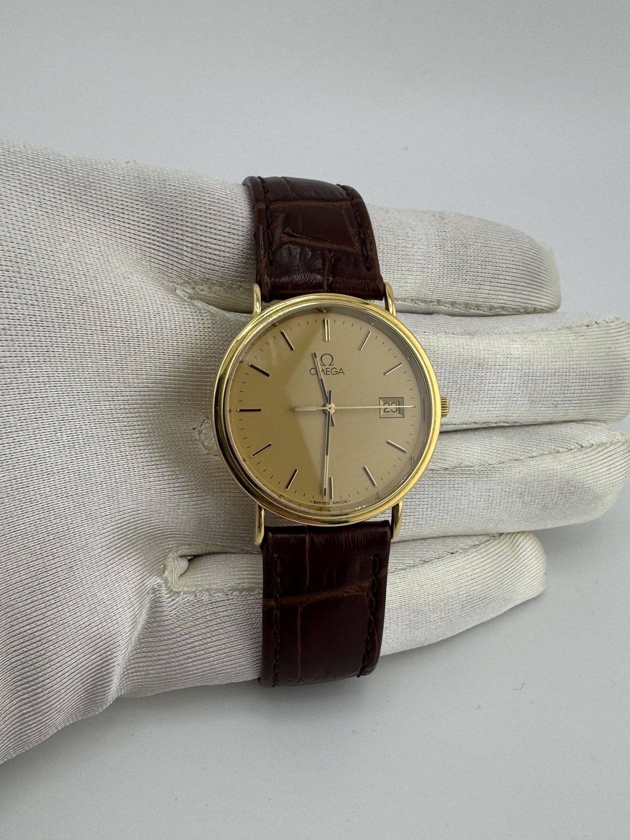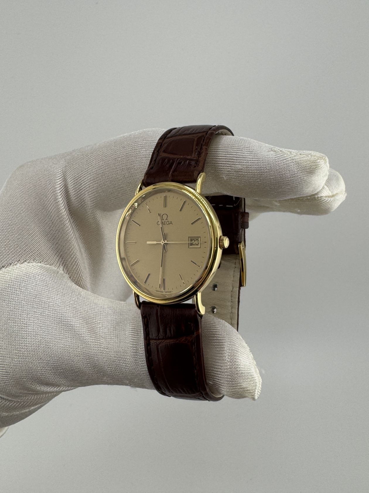 Классические швейцарские часы Omega De Ville в элегантном корпусе из золота диаметром 33 мм. Модель оснащена точным кварцевым механизмом и дополнена ремешком из натуральной кожи. Лаконичный дизайн и безупречное исполнение делают этот аксессуар идеальным выбором для ценителей роскоши и стиля.