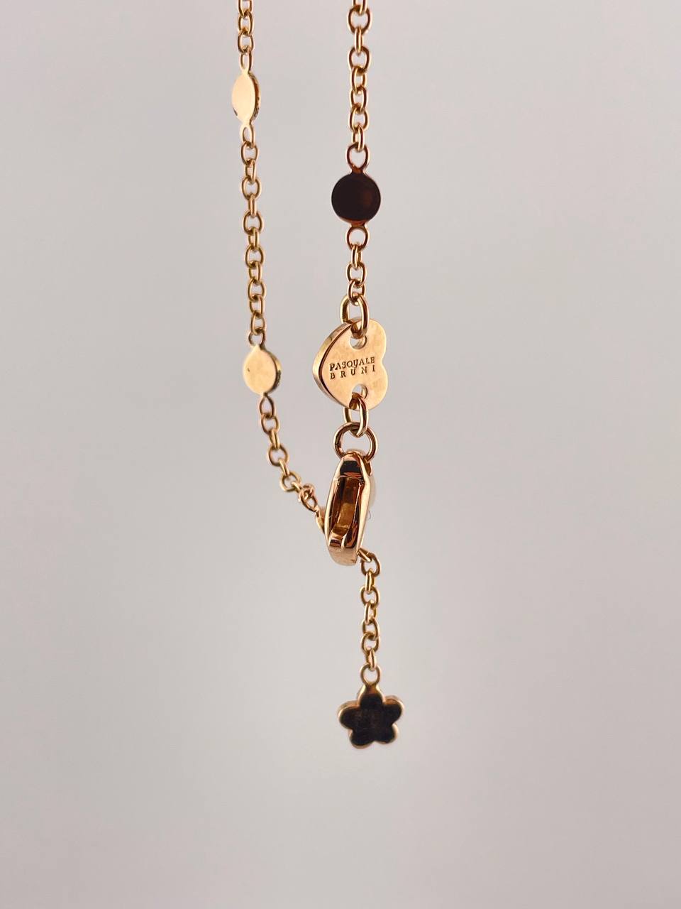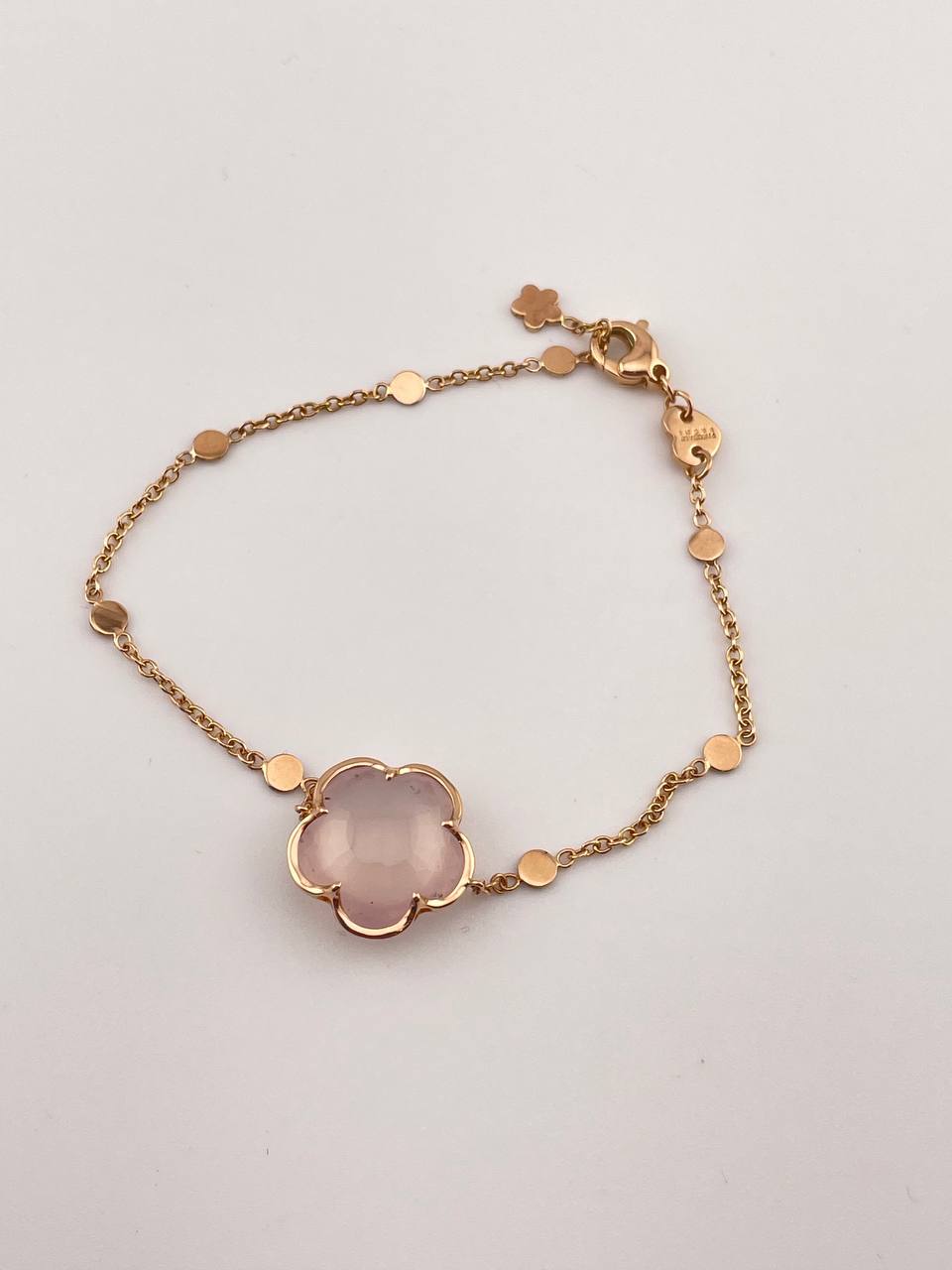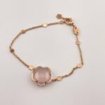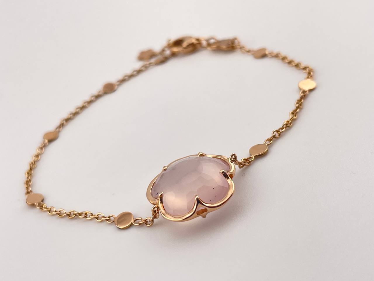 Изящный браслет Pasquale Bruni из коллекции Rose Quartz, выполненный из розового золота 750 пробы. Украшение весом 6 грамм дополнено нежным розовым кварцем, подчеркивающим утонченность дизайна. Классический аксессуар 19 размера станет идеальным воплощением женственности и итальянского ювелирного мастерства.