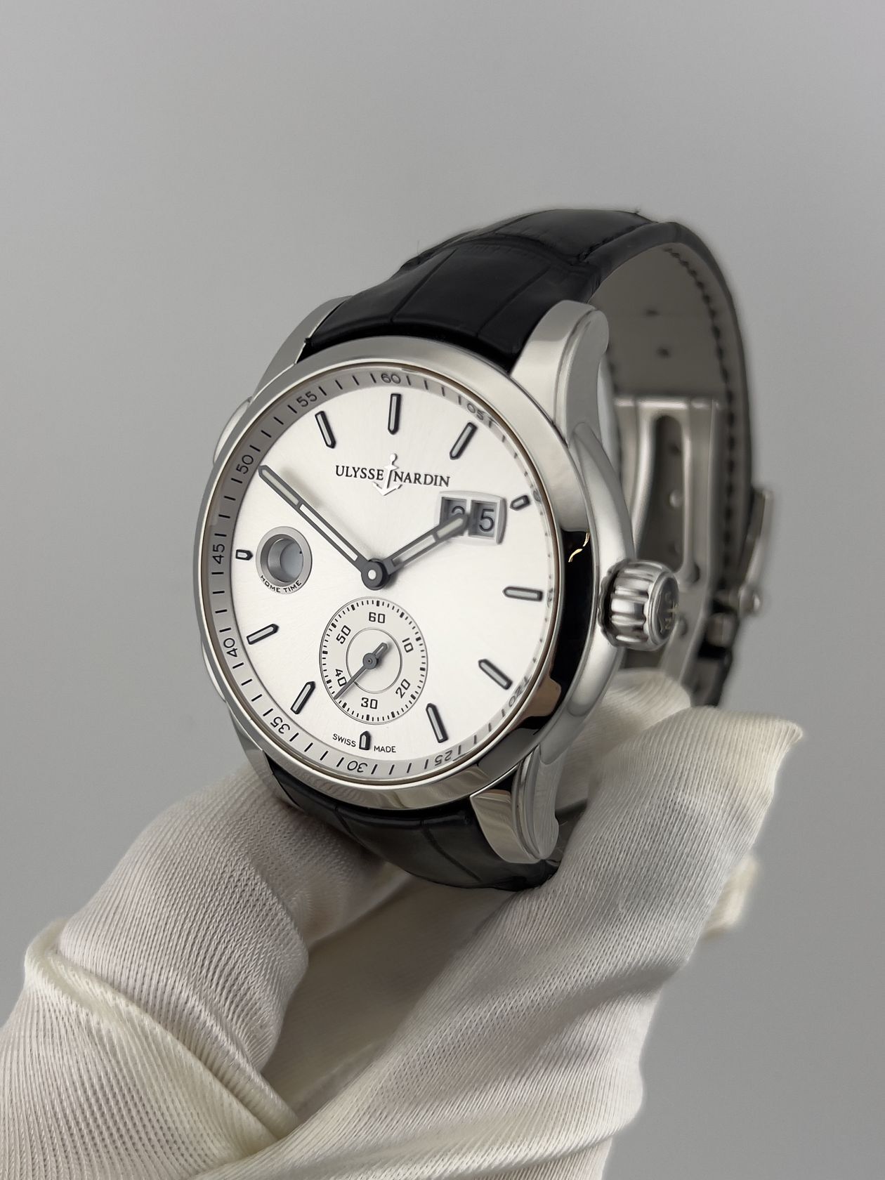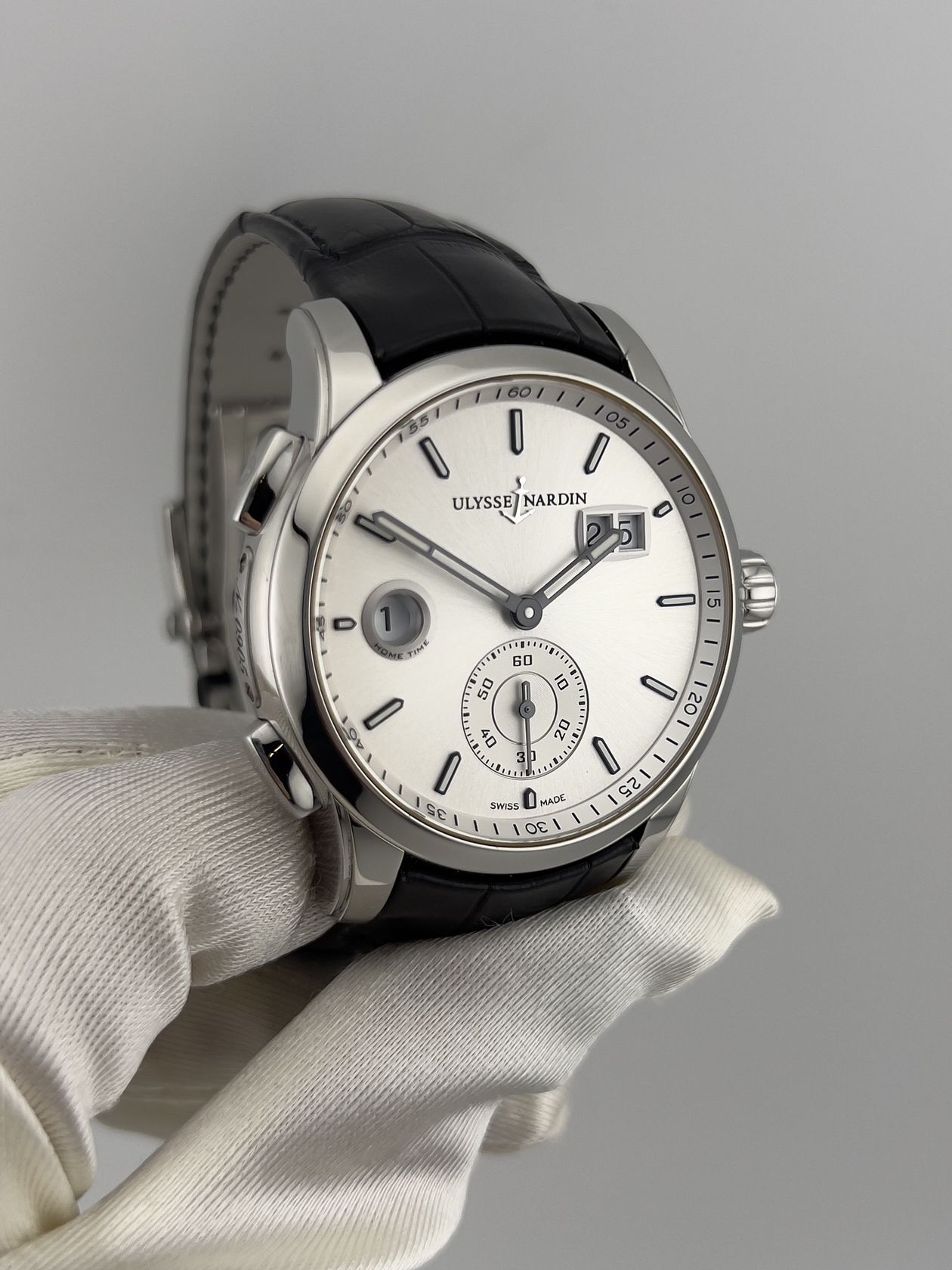 Элегантные швейцарские часы Ulysse Nardin Dual Time в корпусе из нержавеющей стали диаметром 42 мм. Модель оснащена надежным механизмом с автоподзаводом и дополнена изысканным ремешком из кожи аллигатора. Сочетание морского наследия бренда и функциональности в классическом исполнении.